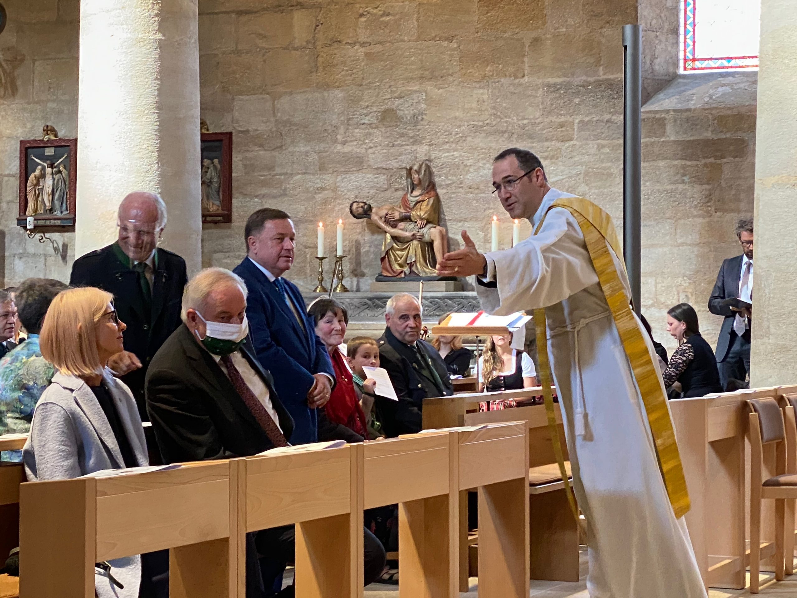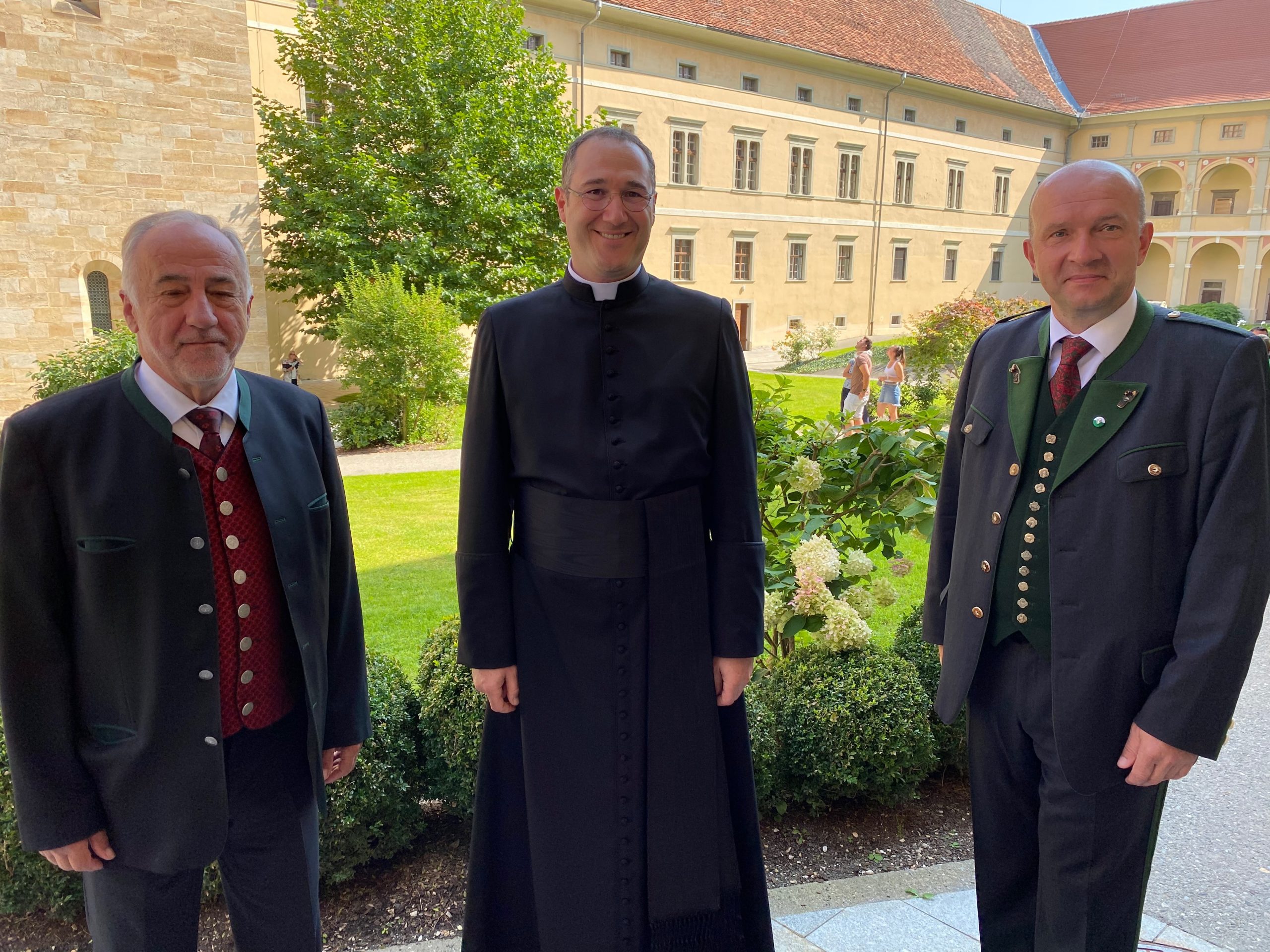 Bischof Wilhelm Krautwaschl hat in der Seckauer Basilika drei Männer zu Priestern geweiht. „Hier bin ich“, antworteten Elias Markus Kraxner aus Kitzeck, Dominik J. Wagner aus St.Ruprecht an der Raab und Markus Schöck aus Knittelfeld, als Bischof Krautwaschl sie in der Seckauer Basilika als Kandidaten für die Priesterweihe aufgerufen hat. Von Schöck weiß man, dass er den Ruf zu diesem Amt schon lange gespürt hat und, wie seine zwei Mitbrüder, seine Entscheidung dieses eine Mal noch verbindlich bekräftigte. Kraxner, Wagner und Schöck wurden vom Bischof geweiht und eingekleidet. Er machte in seiner Predigt keinen Hehl daraus, dass das Priesteramt eine große Herausforderung ist, die jeder von ihnen auf seine Art zu meistern hat: „Es gibt nicht den Priester, jeder für sich ist individuell aber doch eine Gemeinschaft mit der steirischen Priesterschaft.“ Erstaunlich viel wusste Landeshauptmann Hermann Schützenhöfer über die neuen Priester. Von Schöck beispielsweise, dass er Bauleiter, Bezirksleiter beim Roten Kreuz und langjähriger Vizebürgermeister in Knittelfeld war: „Er hat sich immer für die Menschen eingesetzt und so war es nicht weit zu dem Entschluss, Priester zu werden.“ Weil der Grazer Dom renoviert wird, wurden die Priester in Seckau geweiht. Die Seckauer waren sich dieser Ehre bewusst. Deutlich zeigten sie es vom Blumenschmuck bis zur Beflaggung des Gemeindeamtes. Obwohl der Festgottesdienst erst um 15 Uhr begonnen hat, gab es ab 13 Uhr in der näheren Umgebung der Basilika keine Parkplätze mehr. Landesrat Hans Seitinger, Bezirkshauptfrau Ulrike Buchacher, Landtagspräsidentinnen Manuela Khom und Gabriele Kolar, LAbg. Bgm. Bruno Aschenbrenner, VP-Bezirksparteiobmann Bgm. Hermann Hartleb, Präs. Peter Rieser, Volksanwalt Werner Amon, VP-Bezirksgeschäftsführer Alfred Taucher, Landesfeuerwehrkommandant-Stv. Erwin Grangl, Vzbgm. Rene Jäger und viele mehr sind angereist. Die Kennzeichen der parkenden Autos zeigten, dass sich Besucher aus der ganzen Steiermark dieses kirchliche Ereignis nicht entgehen lassen wollten. Es ist beim Hochamt zur Priesterweihe gelungen, die Corona-Regeln einzuhalten, und zwar nicht nur in der Basilika, sondern auch bei der anschließenden Agape vor dem Gotteshaus.
